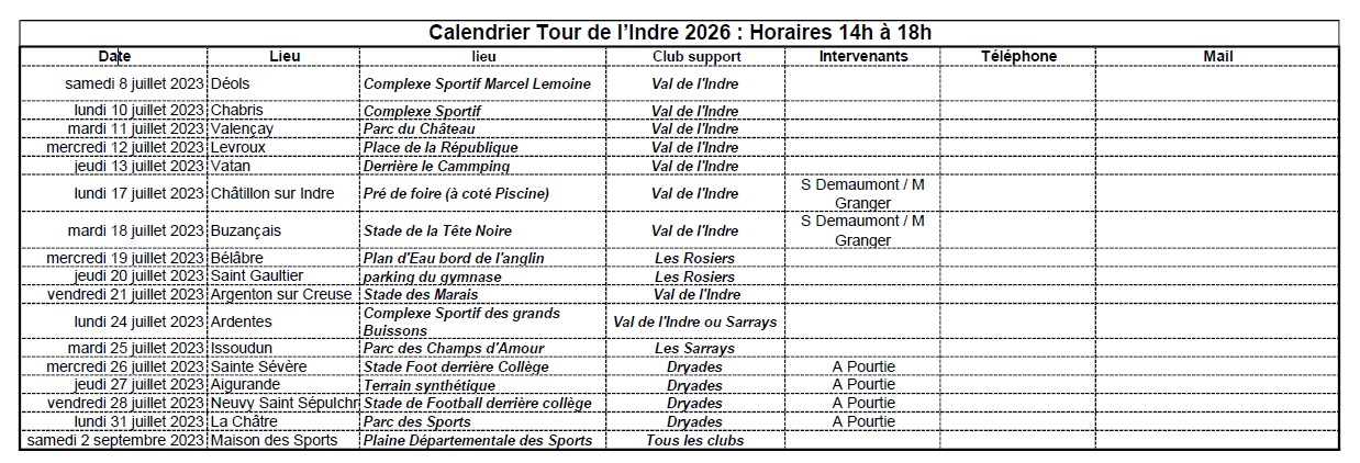 Le Tour de l'Indre des Sports est un évènement annuel organisé par le département durant le mois de juillet.