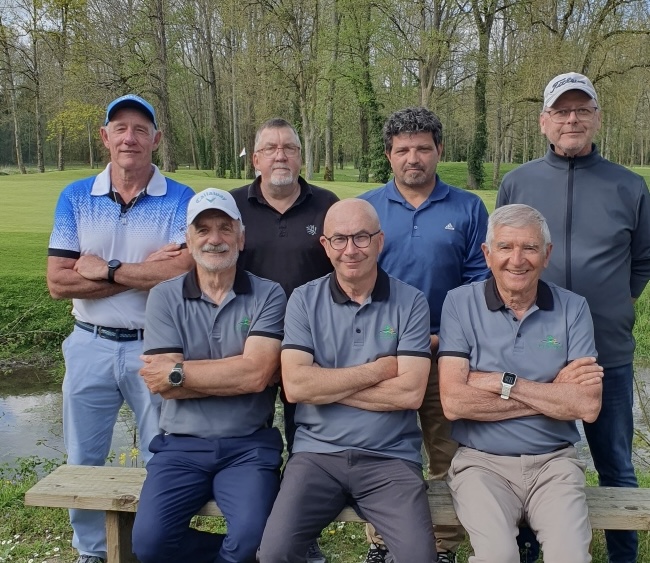 Rencontre du 31 mars reportée à ce lundi 14 avril. Notre équipe 2 messieurs du Val de l'Indre recevait l'équipe B de Marcilly pour la finale du groupe puisque les 2 équipes étaient à égalité de points avant le début des hostilités. Sous un beau soleil et sur un terrain magnifique, notre équipe l'a emporté, non sans difficultés, sur le score de 3 à 2. A la fin des 4 simples, nous étions à égalité à 2 partout : Christian COUPET, Dominique DEVAUX partagent le score. Alain GROLLAUD perd 2 à 0 et Jean-Yves COUSINARD gagne 4 à 2. Il fallait donc s'en remettre au foursome de la dernière partie pour connaître le vainqueur afin d'accéder à la deuxième division. Philippe VALIN et Michel BOUGAULT ont magnifiquement terminé l'après midi en s'imposant 2 à 0 sur le 18ème trou