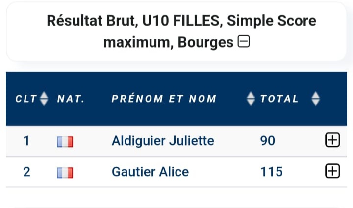 Un grand bravo à nos jeunes représentants qui se distinguent avec les premières places d'Andréa Glaume en minimes et Juliette Aldiguier en U10.