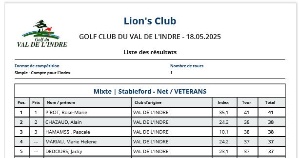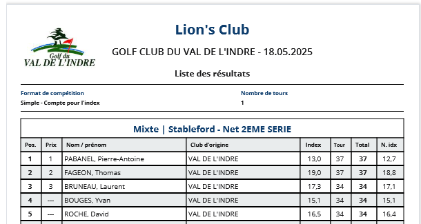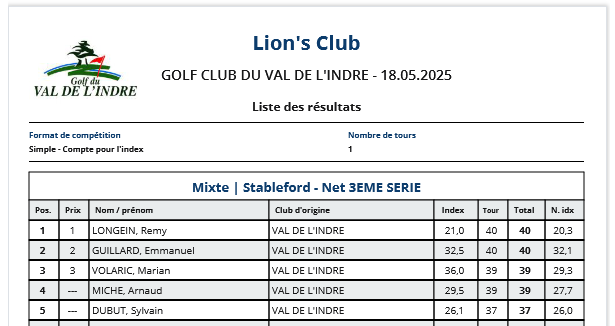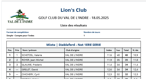 Compétition caritative organisée par le Lion'sClub au profit de l'association "Enfants Cancer Santé". Tous les droits de jeu (15 euros adulte, 10 euros enfant) ont été reversés.