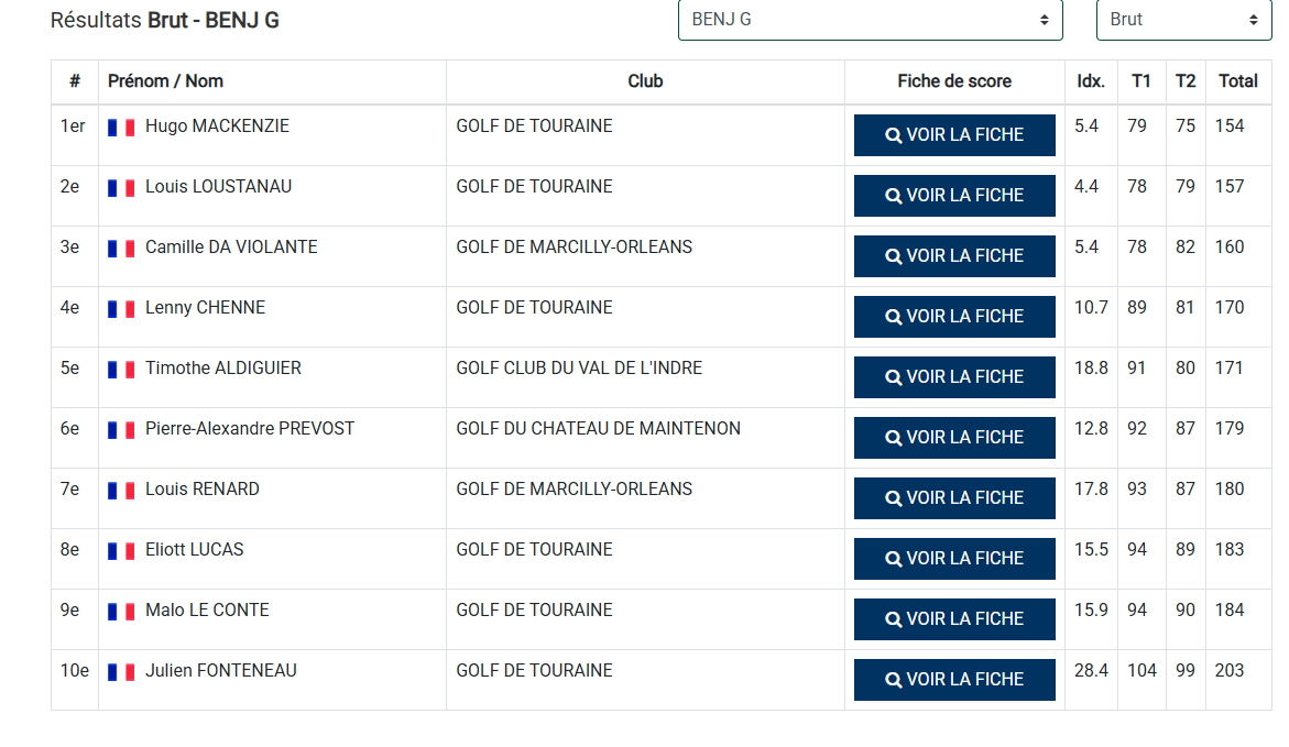 En benjamins, Timothé ALDIGUIER termine a une excellente 5ème place, réussissant 3 birdies lors du 2ème tour.